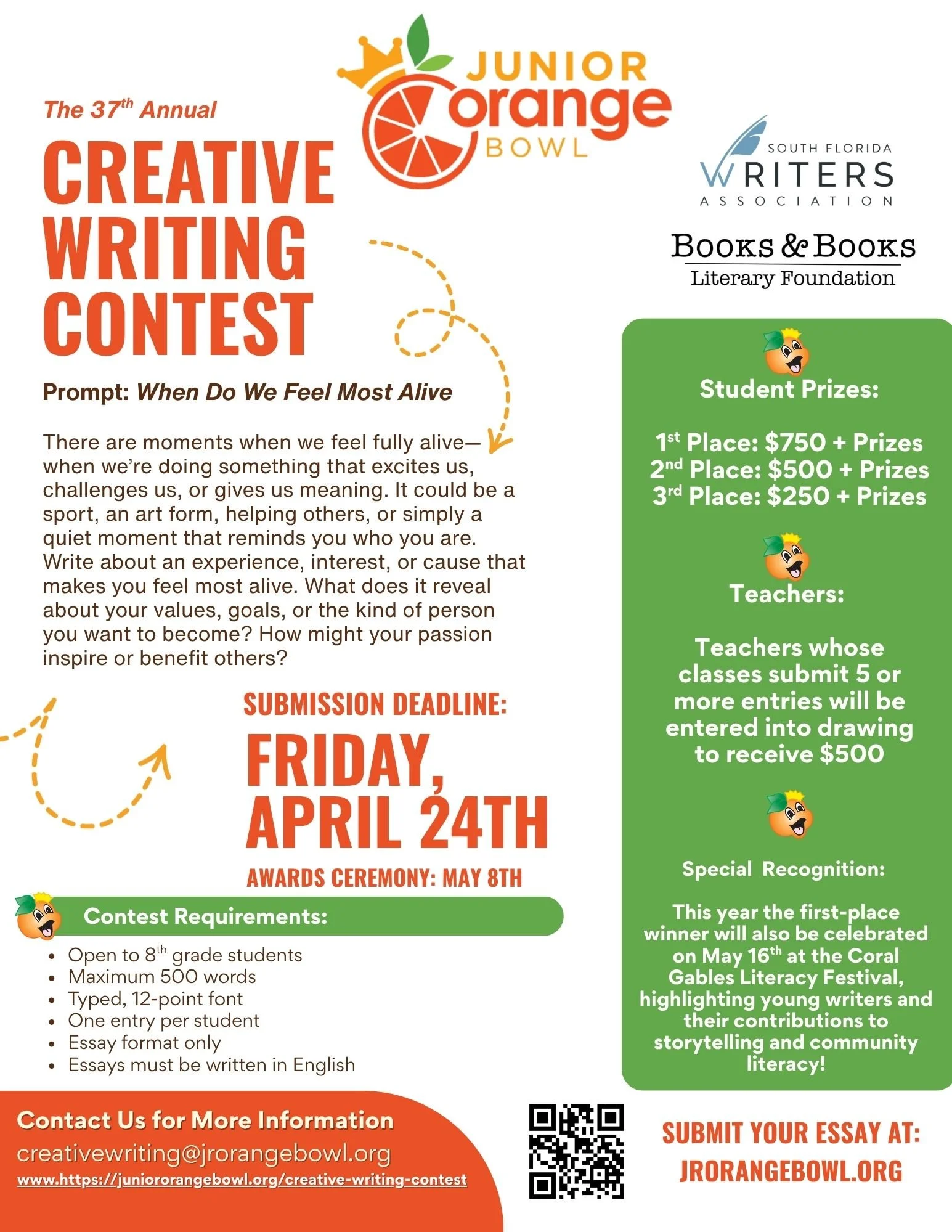 We are proud to bring The 37th Annual Junior Orange Bowl Creative Writing Competition to Miami-Dade County School students again this year.